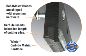 The Winter® Equipment RoadMaxx™ Grader Blade, is engineered with a much harder surface cutting edge system, making it an excellent answer for this application.